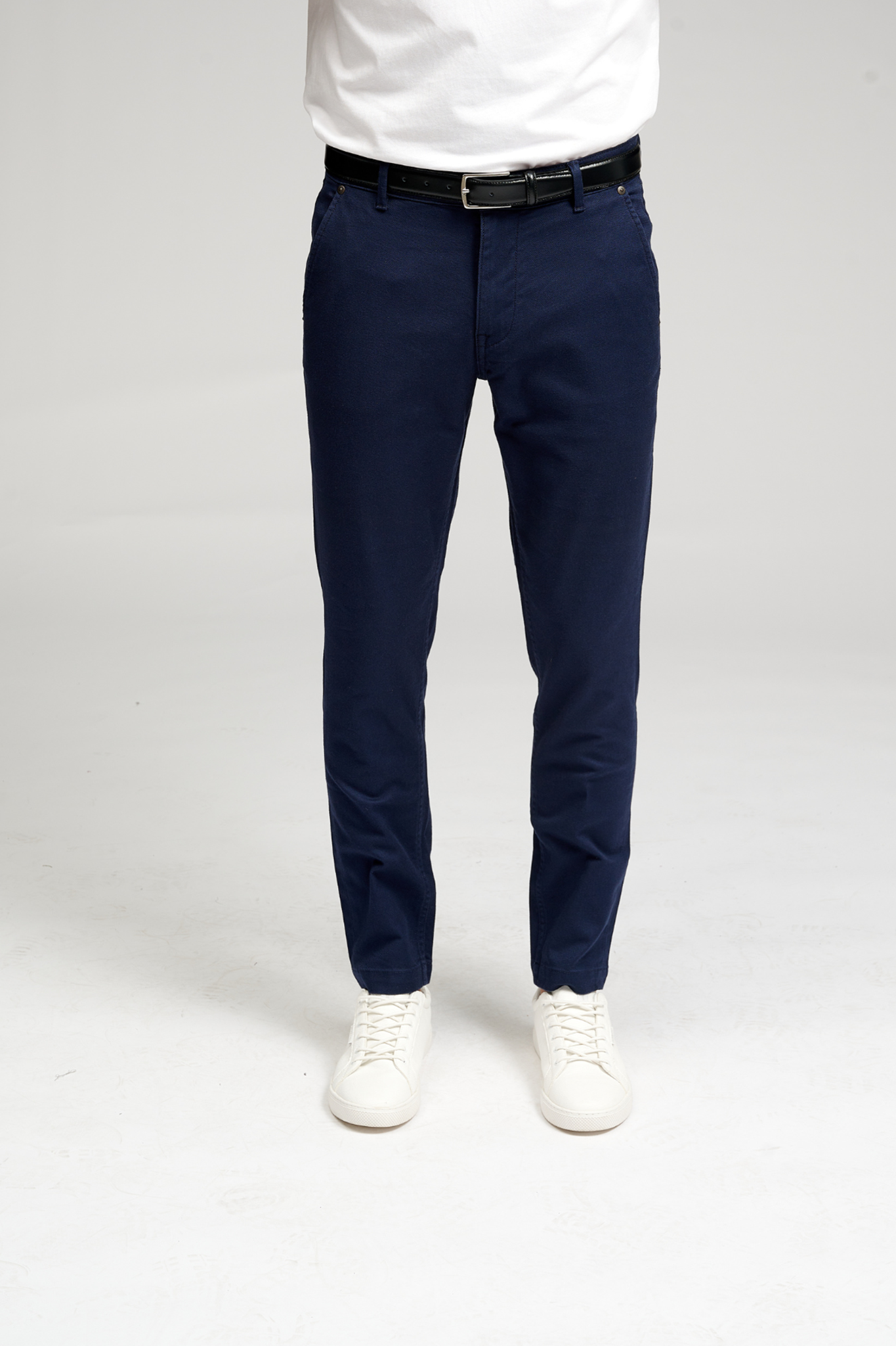 The elegant navy color of these trousers makes them incredibly versatile, easily pairing with a wide range of shirts, sweaters, and jackets. This timeless hue ensures you stay stylish, whether at work or during leisure. The navy color adds a touch of sophistication and versatility to your wardrobe, allowing you to effortlessly transition from day to night.