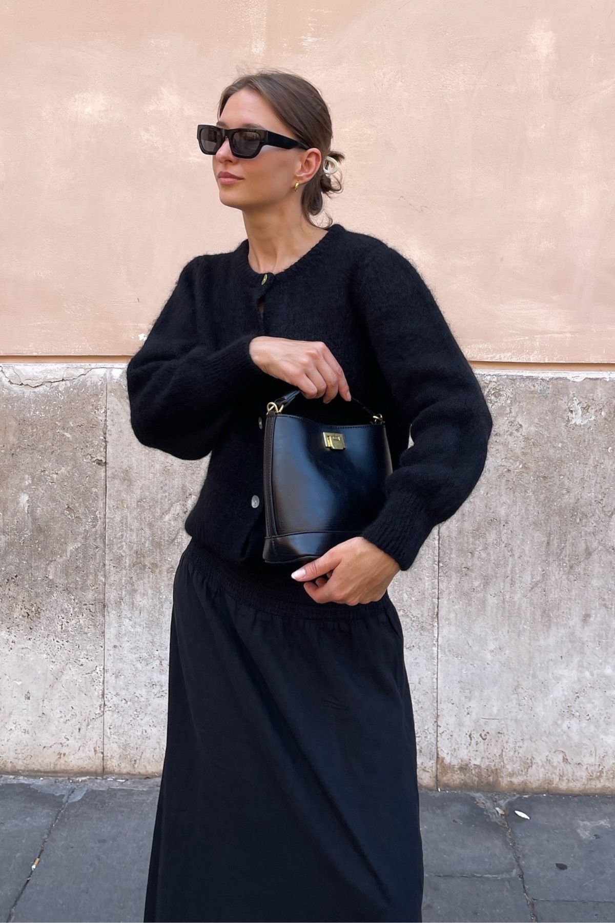Step into timeless fashion with the Anna Cardigan in Black. Designed for women who appreciate both style and comfort, this wardrobe essential features a soft blend of materials that ensure warmth and durability. The deep black hue pairs effortlessly with any outfit, making it suitable for both casual and formal occasions. Its classic cut complements a wide range of body types, creating a flattering silhouette. Perfect for layering, the Anna Cardigan is ideal for transitioning between seasons. Experience TeeShoppen's commitment to quality and style with this must-have cardigan today.