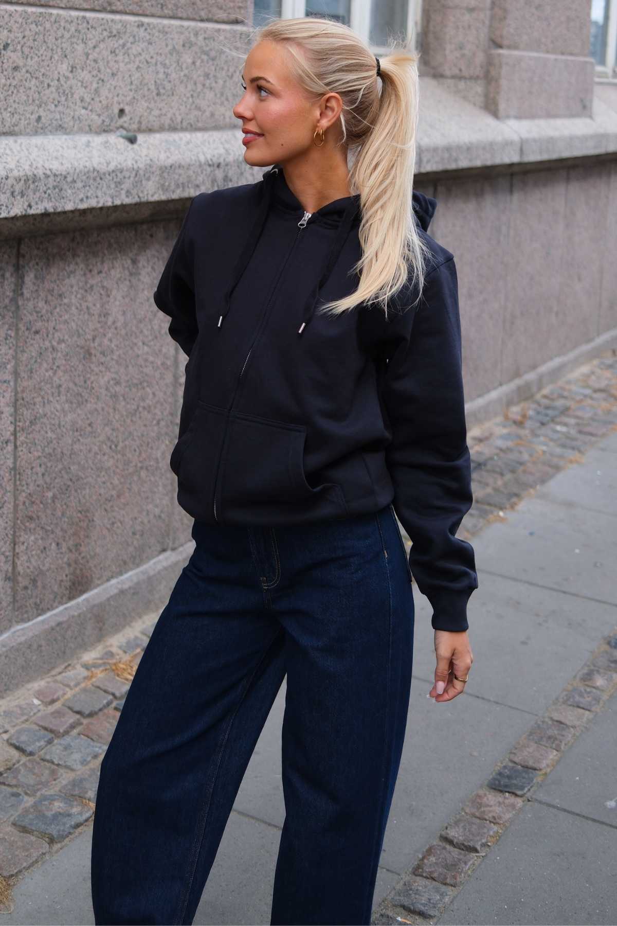 Imagine wrapping yourself in a hug. That's the feeling of our meticulously crafted cotton-polyester blend. The fabric is designed to be incredibly soft against your skin, providing warmth without the weight. The full-zip front offers ultimate versatility – zip it up for a cosy, snug feel on a chilly morning walk, or wear it open over a classic tee for a relaxed, layered look. The deep Dark Navy hue is a timeless alternative to black, pairing seamlessly with everything from bright whites to earthy tones.