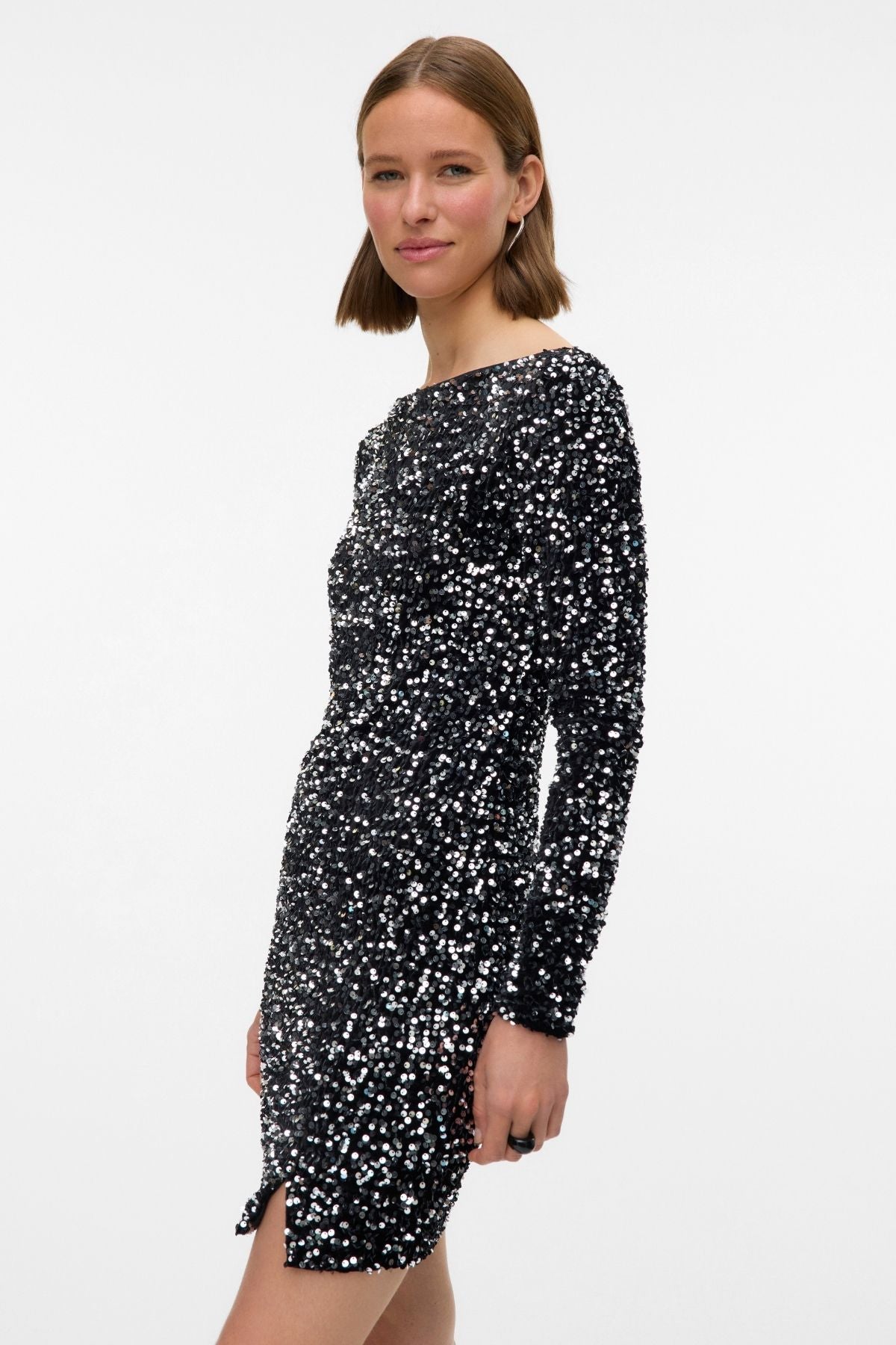 Bella Short Dress - Black Silver