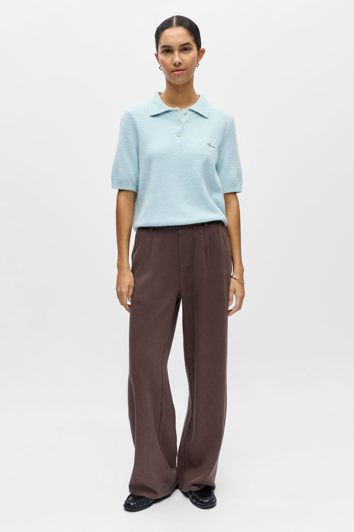 The beauty of the Debbie Knit Polo lies in its versatility. The light blue colour serves as a fantastic neutral that pairs wonderfully with various tones. For a professional yet comfortable work ensemble, match this knit with a pair of sharp, tailored Trousers and loafers. Alternatively, style it with your favourite denim for a relaxed weekend look that exudes understated elegance.