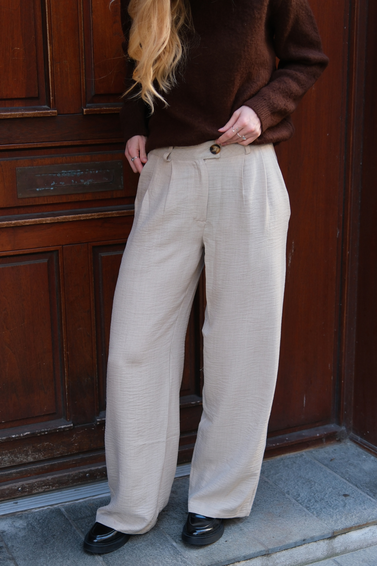 From the office to evening events, the Emma Pants Loose in Beige are designed to elevate your outfit. Pair them with a crisp blouse and a tailored blazer for a refined look, or choose a casual top for a relaxed, weekend vibe. Our collection of garments is dedicated to offering you versatility and comfort in your day-to-day style. For those looking for a complete smart ensemble, consider exploring our range of