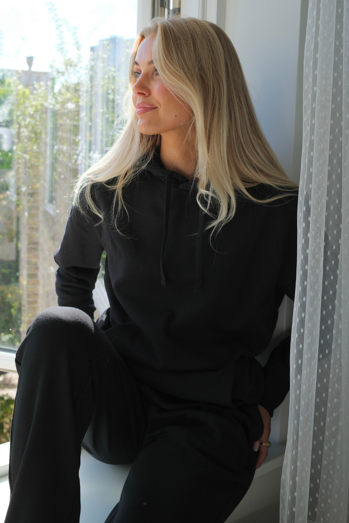 The beauty of the Essential Hoodie lies in its sophisticated simplicity. The deep, versatile Black hue is a cornerstone of any chic wardrobe, offering endless styling options: