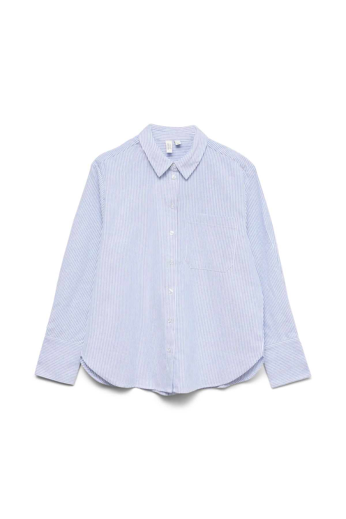 Discover the perfect addition to your capsule wardrobe with the Inge Shirt - Palace Blue Snow White by Vero Moda. This sophisticated piece effortlessly bridges the gap between sharp office attire and relaxed weekend wear, offering you a versatile staple that never goes out of style. The classic Blue-White Striped design evokes a sense of maritime chic while maintaining a professional edge, making it an essential choice for the modern woman.