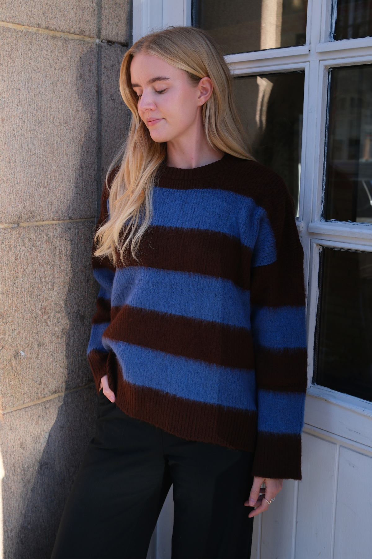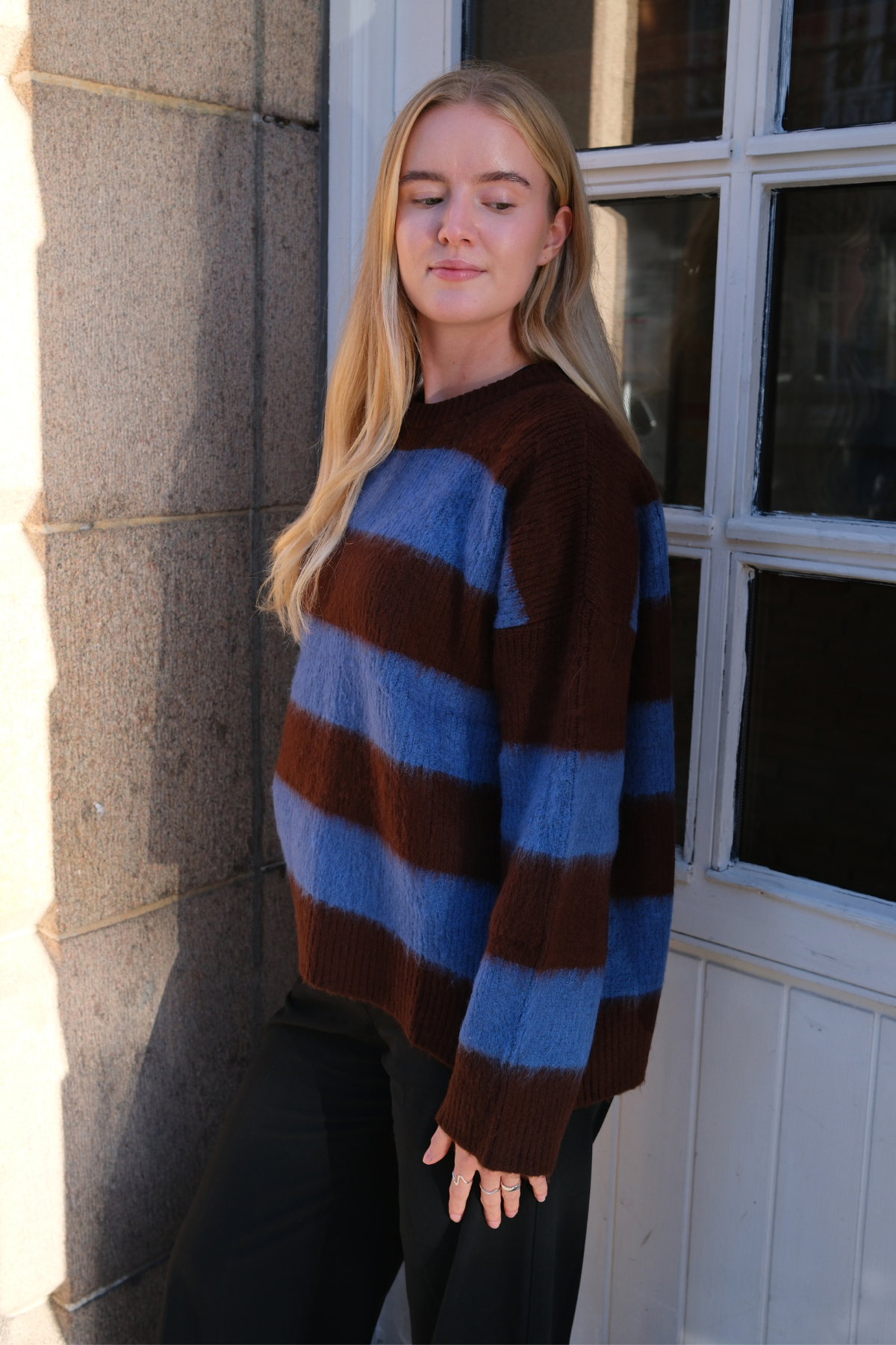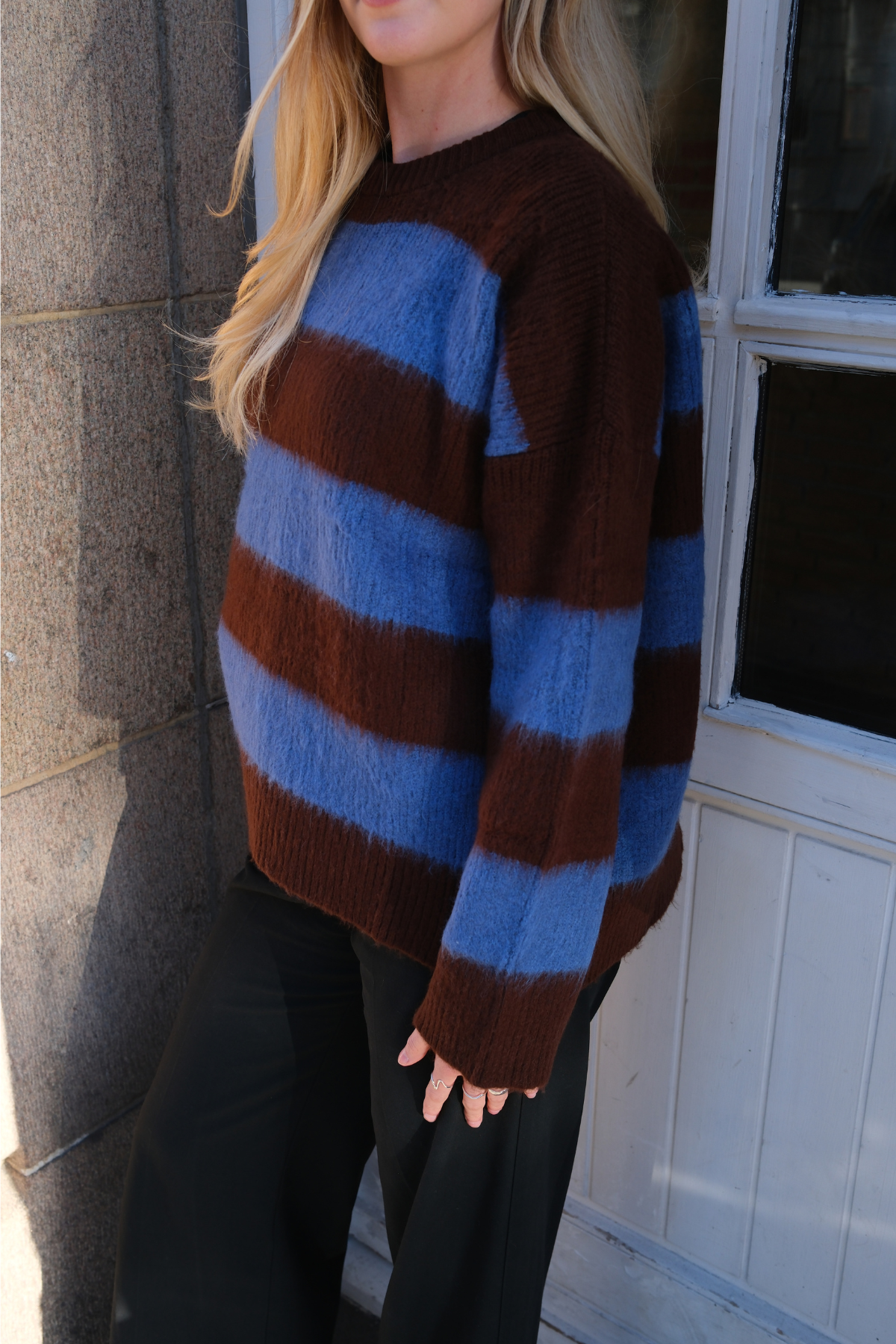 Meet your new wardrobe favourite. The Juliette Striped Jumper is more than just a piece of knitwear; it is an invitation to effortless style. Inspired by classic Parisian elegance with a contemporary twist, this jumper is designed for the modern woman who values both comfort and sophistication. Its stunning blue and brown stripes offer a fresh, earthy take on a timeless pattern, ensuring you stand out with understated grace.