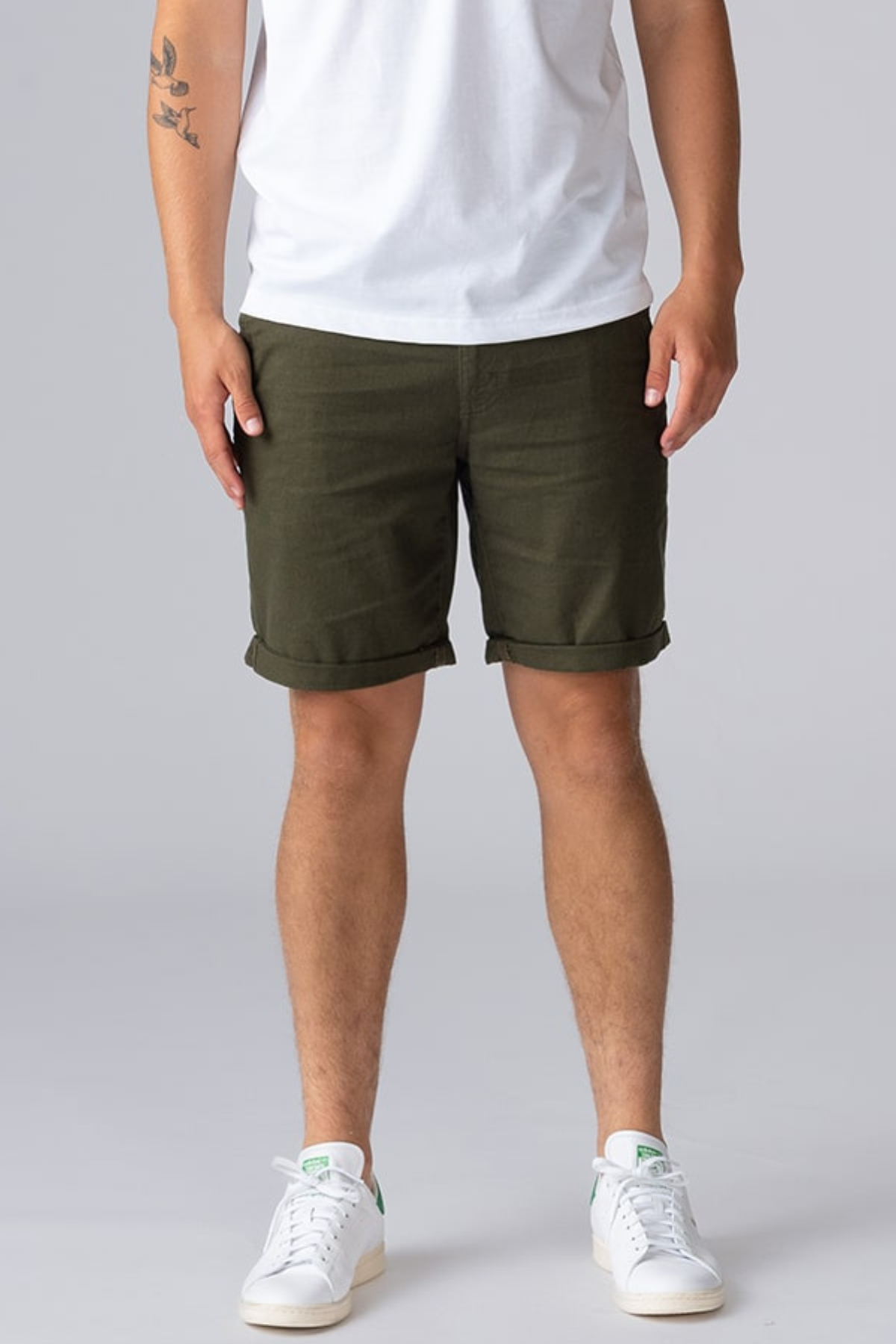 Explore Nature in Style: Linen Shorts - Dark Green for Men