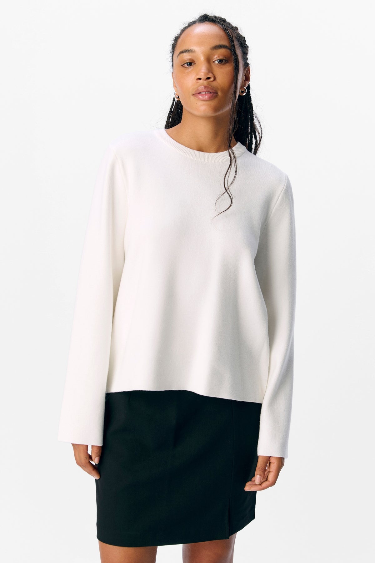 Elegant Design: Classic O-neck silhouette in the timeless Cloud Dancer shade.