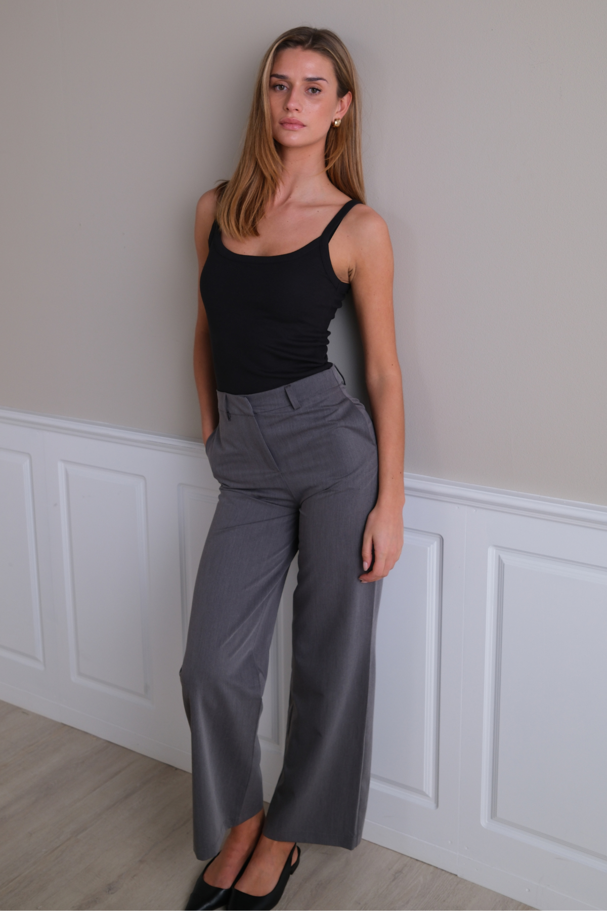 Step into a world of effortless elegance with the Rosalie Wide Trousers from TeeShoppen. Designed for the modern woman who values both style and comfort, these trousers are the versatile cornerstone your wardrobe has been waiting for. In a sophisticated, go-with-anything grey, they offer a perfect canvas for creating countless stunning outfits, whether you are heading to the office, enjoying a weekend brunch, or dressing up for an evening out.