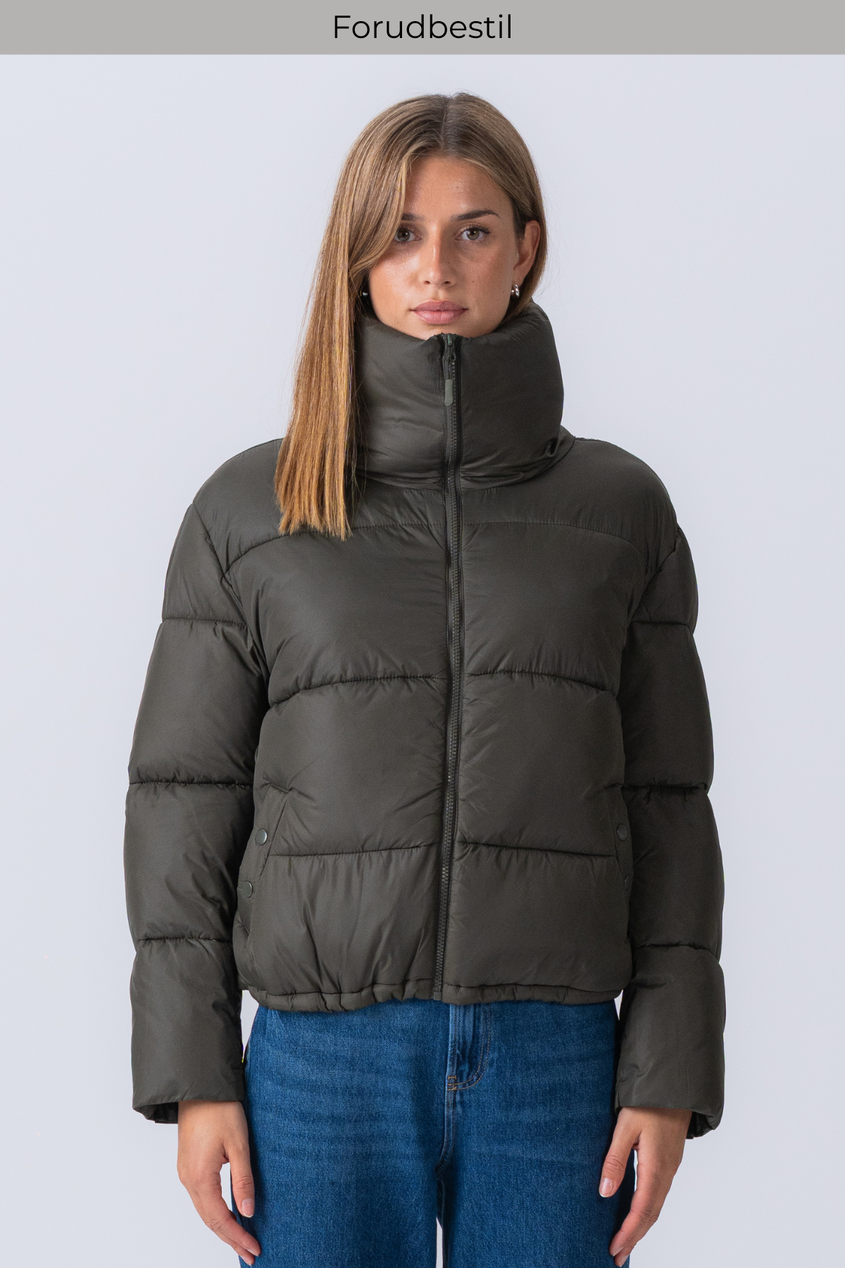 The beauty of this olive puffer lies in its endless versatility. It’s a true wardrobe chameleon, ready to complete any look you can imagine.