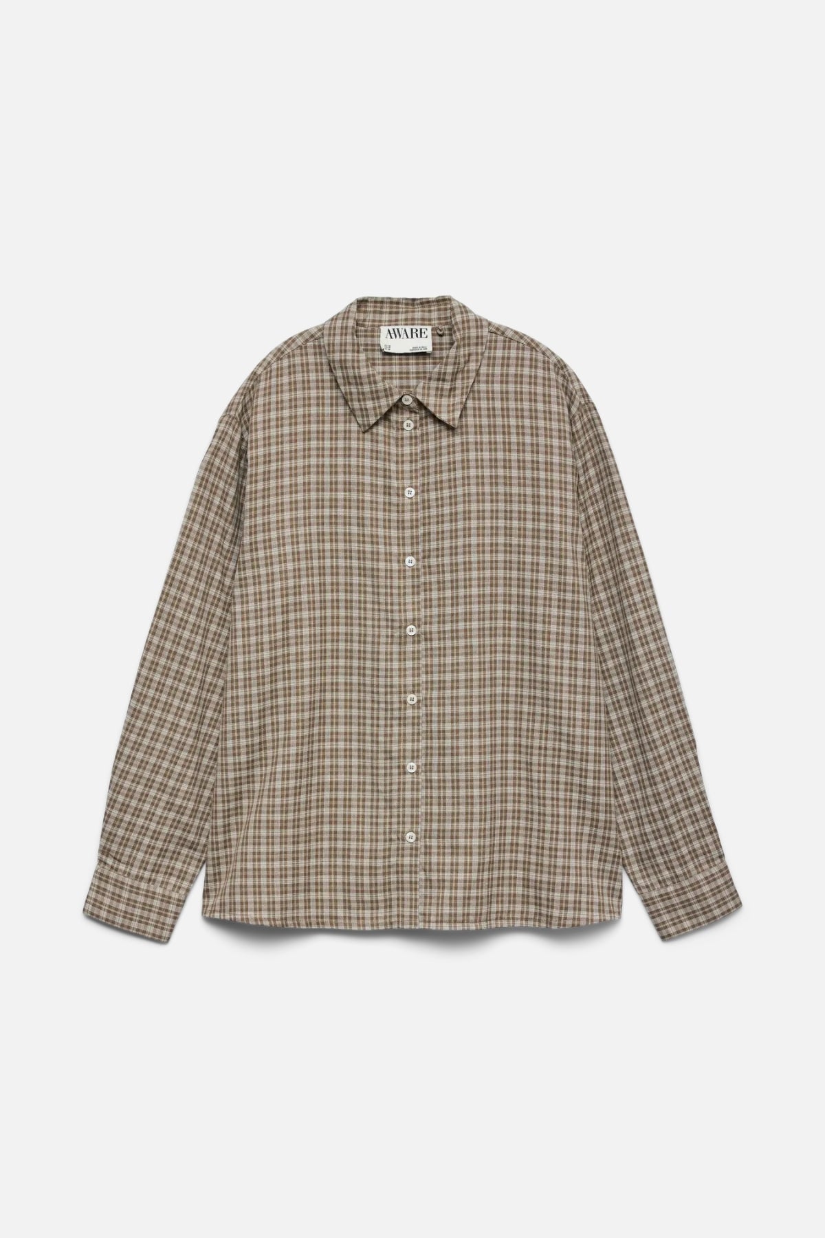 The Tamira Shirt boasts an eye-catching teak checks pattern that adds a touch of refined charm to your outfit. The brown hue is balanced perfectly with modern detailing, making it a versatile piece for both formal and casual settings. This shirt is not only a fashion statement but also a celebration of quality craftsmanship. Every design detail has been curated to ensure optimum fit and a flattering silhouette, making it an essential addition to any woman's collection.