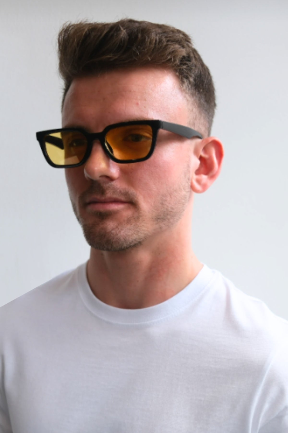 The Wilhelm Sunglasses are meticulously crafted to offer a contemporary aesthetic that complements any man's wardrobe. The bold contrast between the deep black and the energetic yellow creates an unforgettable visual impact, ensuring you stand out for all the right reasons. Whether you're navigating the urban jungle or enjoying a sun-drenched getaway, these sunglasses provide an instant upgrade to your personal style, exuding confidence and a keen eye for detail.